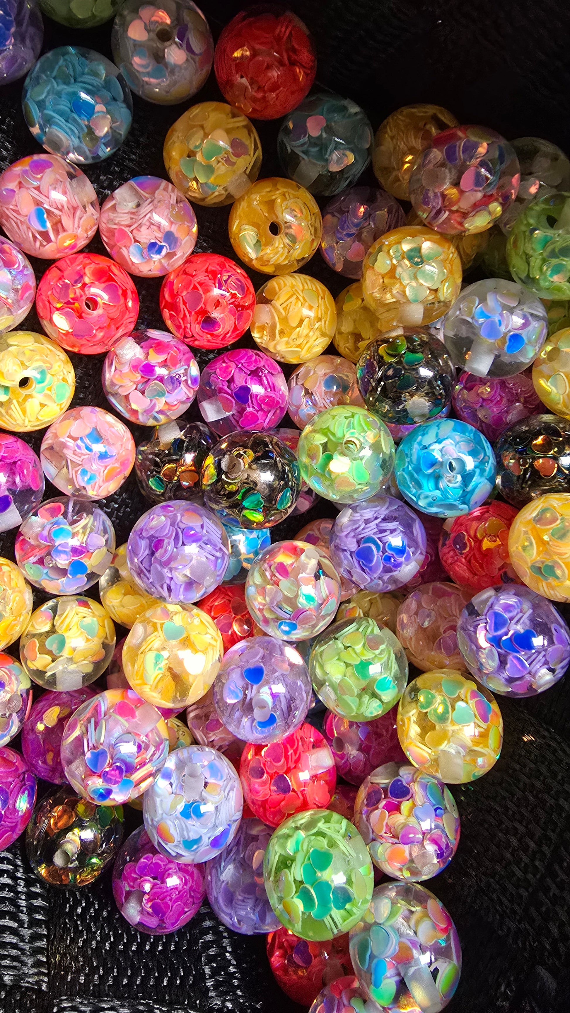 Enhance your crafts with Confetti Beads! These 16mm beads contain heart-shaped confetti in various vibrant colours. Perfect for adding a unique touch to pens, keychains, phone chains, and other crafts. Let your creativity shine with Confetti Beads.